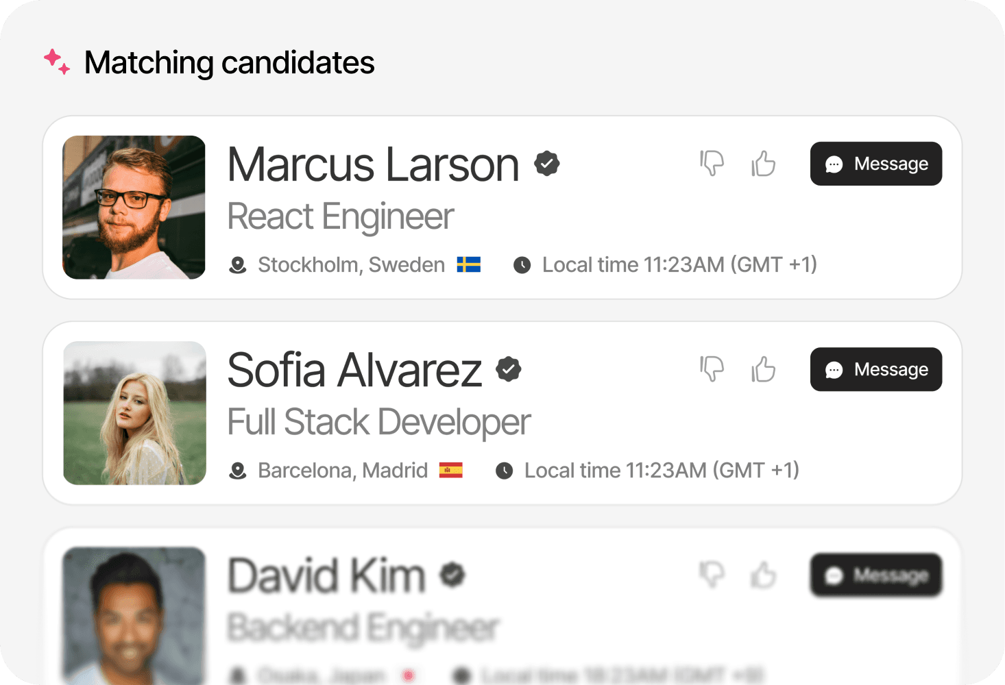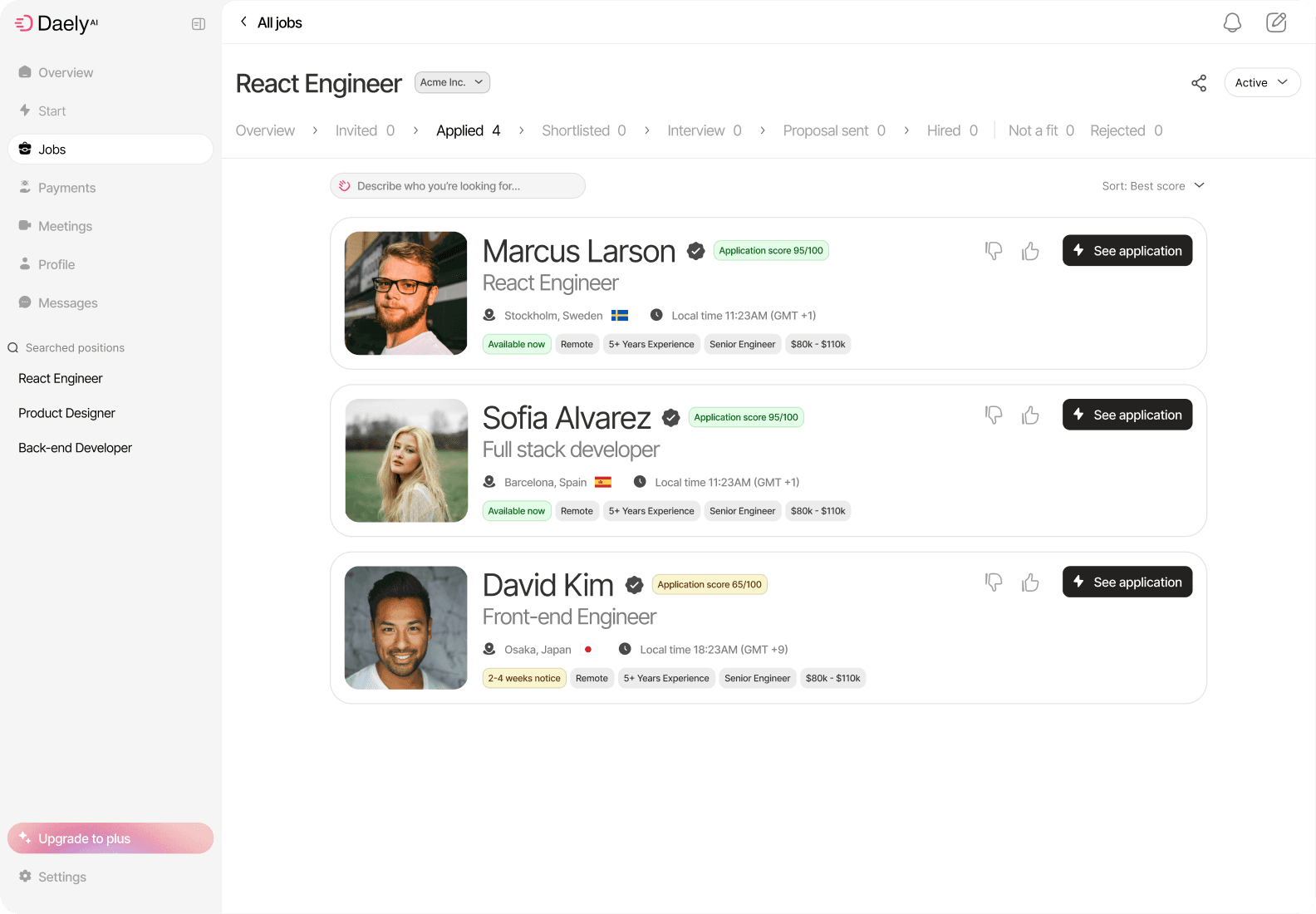 Daely searches, evaluates, and compares candidates automatically, so you start with the best profiles.